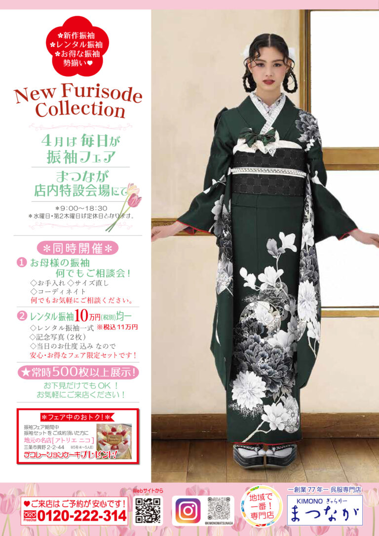 4月春休み振袖フェア開催中! 新作振袖も続々入荷! 下見歓迎、お気軽にお越しください。 来店のご予約 […]